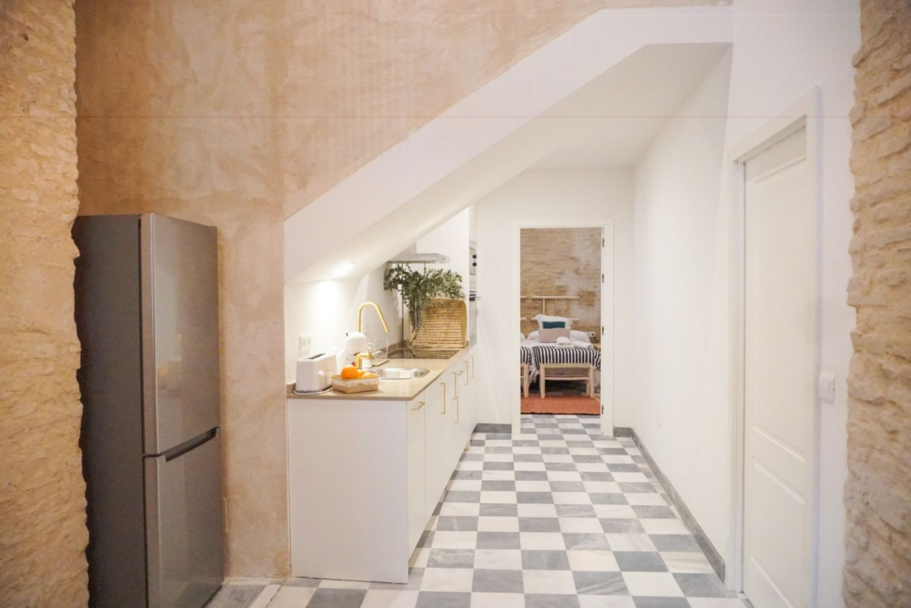 Amplio y luminoso apartamento en planta baja, totalmente accesible y adaptado para personas con movilidad reducida, con capacidad de hasta 2 personas, en pleno centro de Sevilla, a un paso de las principales atracciones turísticas de la ciudad.